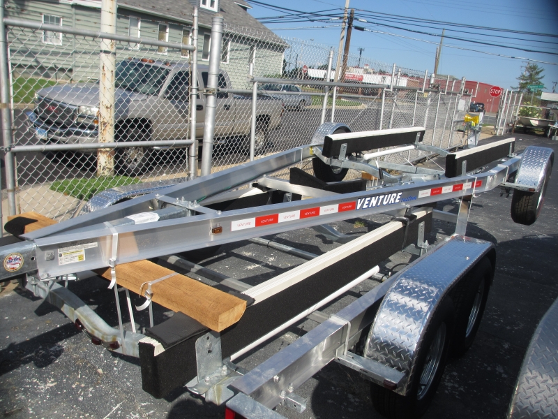 As a Venture Trailer Outlet Center, we are excited to offer brand new Venture trailers to our customers. We will be stocking several models, and in most cases we can get you what you need - when you need it. We are conveniently located just six miles from the Venture manufacturing facility, so we can eliminate the added cost of shipping and pass those savings on to you. These trailers are aluminum bunk trailers with poly skids and guide poles, and also include a dual wheel tongue jack that swivels for easy loading onto the hitch. Additionally, we will be happy to accept your used trailer as a trade-in!